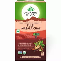 Organic Krishna Tulsi (Leaf), Organic Vana Tulsi (Leaf), Organic Rama Tulsi (Leaf), Organic Assam Black tea, Organic Cinnamon (Bark), Organic Ginger (Root), Organic Cardamom (Seed), Organic Black Pepper, Organic Clove (Bud), Organic Nutmeg, Organic Mace