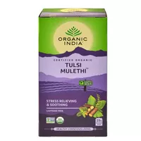 Té Tulsi Licorice Spice Organic India es una armoniosa combinación de tres tipos de albahaca sagrada - Rama, Krishna y Vana - con el característico dulzor del regaliz y un toque cálido de canela, jengibre y limón. Esta mezcla aromática y calmante no solo ofrece un sabor excepcional, sino también un poderoso apoyo para el cuerpo y la mente, inspirado en la sabiduría de la tradición ayurvédica. La Tulsi, conocida como albahaca sagrada (Ocimum sanctum), ha sido utilizada durante siglos en la India como una hierba que ayuda a la desintoxicación, el equilibrio emocional y la resistencia al estrés. Gracias a sus propiedades adaptógenas, ayuda a aliviar la tensión, aumenta la energía y promueve el bienestar general. El regaliz agrega un dulzor natural al té y también apoya la salud del sistema digestivo y respiratorio. El jengibre y la canela le dan un carácter picante y tienen un efecto cálido, que se combina perfectamente con la acción de la tulsi. El té Tulsi Licorice Spice es la elección perfecta para aquellos que buscan una forma natural de relajarse y fortalecer su cuerpo. Su perfil de sabor único, dulce y picante, lo hace perfecto para cualquier momento del día, especialmente en días más fríos o en momentos que requieren calma y regeneración.